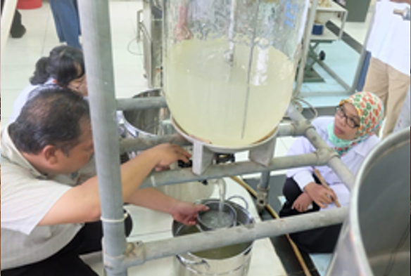 我々は殺虫剤製造業ですでに認可されているニーム油を活性薬剤として、ナノエマルジョン(乳剤)の植物性殺虫剤を調合しました。パーム油をベースとする界面活性剤と活性剤として精油・植物油を使っているため、環境にとって比較的安全な調合物となっています。同殺虫剤は1:100の水で希釈して使用します。同殺虫剤はすでに量産され、現場で活用されています。西カリマンタン州クタパンでの農業従事者への教育と農村地域開発、ブリトゥン島のコショウ農家と西ジャワ州バンドンの園芸農家に対する技術支援等、我々は農業改良普及活動を通じて植物性殺虫剤の重要性に対する意識向上を図っています。