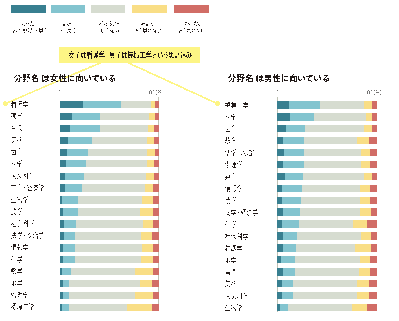 数学ステレオタイプが6歳の段階で見られるので、できれば小学校の段階から教育してほしいですね。たとえば理科の実験の授業では、男子がリーダーになり、女子は書記係になるのが一般的だと言われていますが、実験は男女問わず大好きですから、先生が積極的に「女子がリーダーシップを取るのはいいことだよ」と声がけするのもいいでしょう。