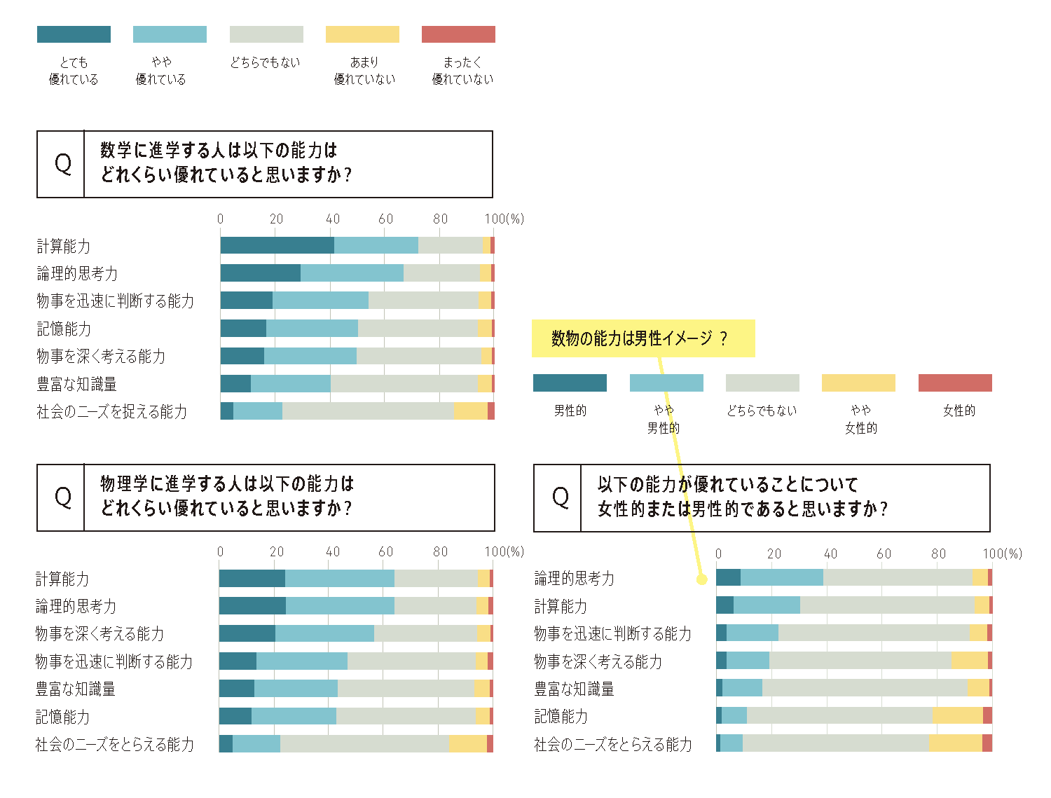 2017年には縁があってKavli IPMUに着任、学際情報学府を兼務して研究室を運営しています。着任当時、初代機構長の村山斉さんに、「理系、特に物理や数学に女性が少ないのはなぜなのか。ぜひともこの問題を研究してほしい」と言われました。OECD最下位で確かに相当に低い状況です。なぜなのか、理由がわからないため手が打てないから、戦略がほしいと言われたのを記憶しています。そこで、科学と信頼という大きいテーマの研究と並行して、この問題に取り組むことにしました。